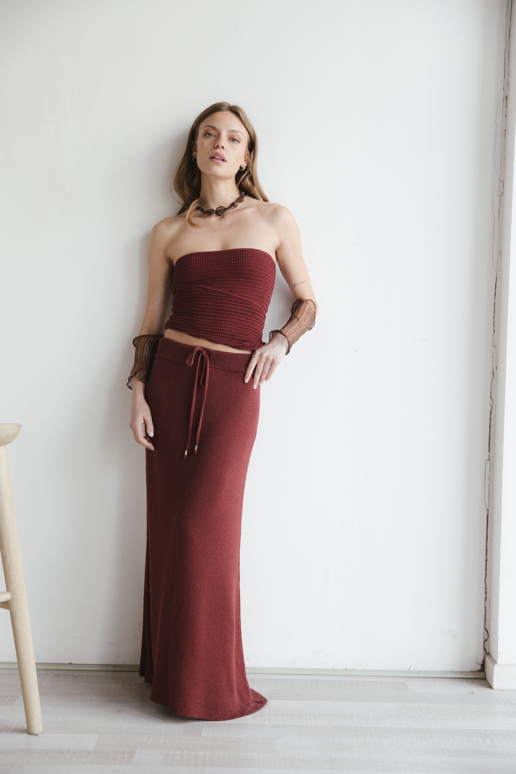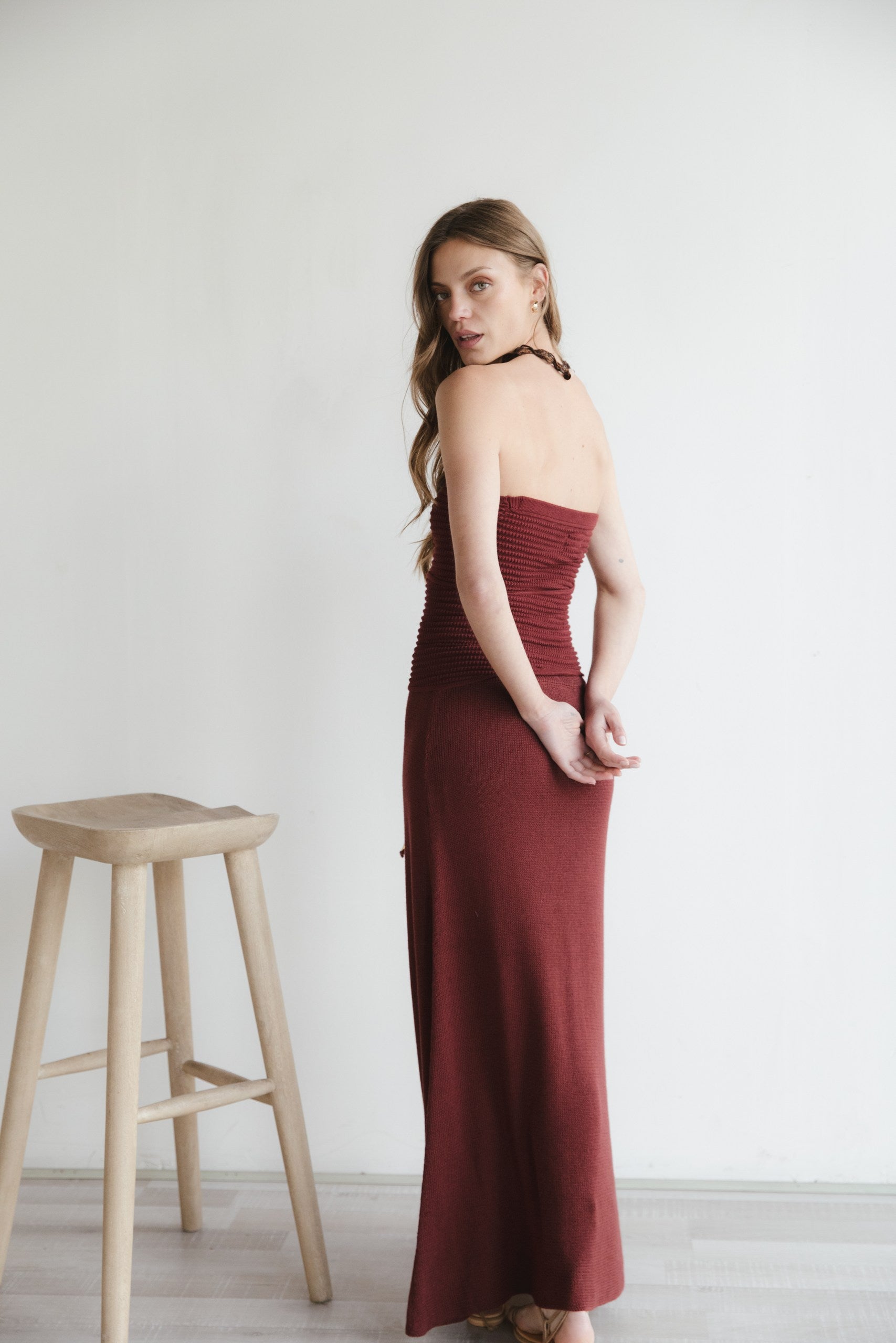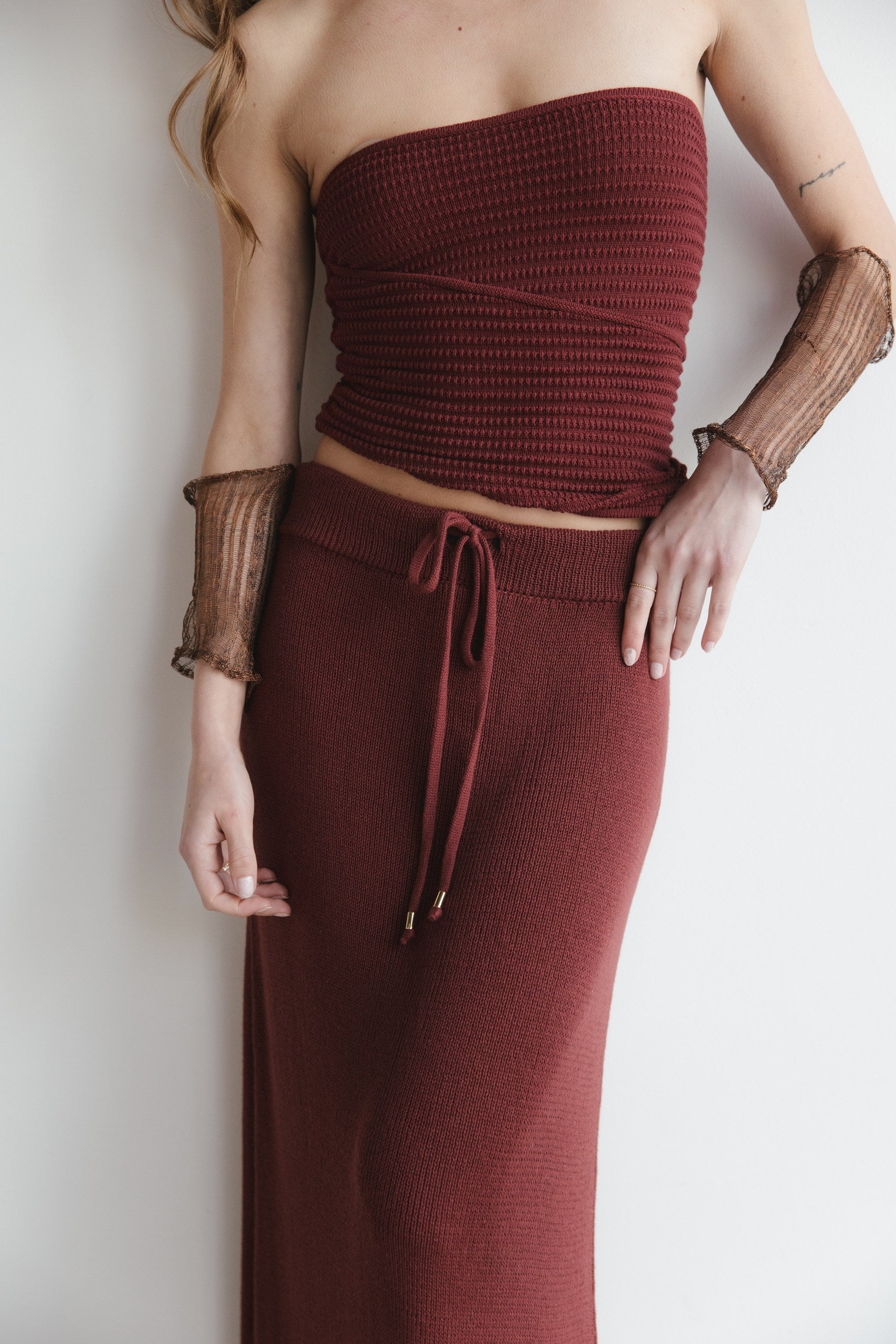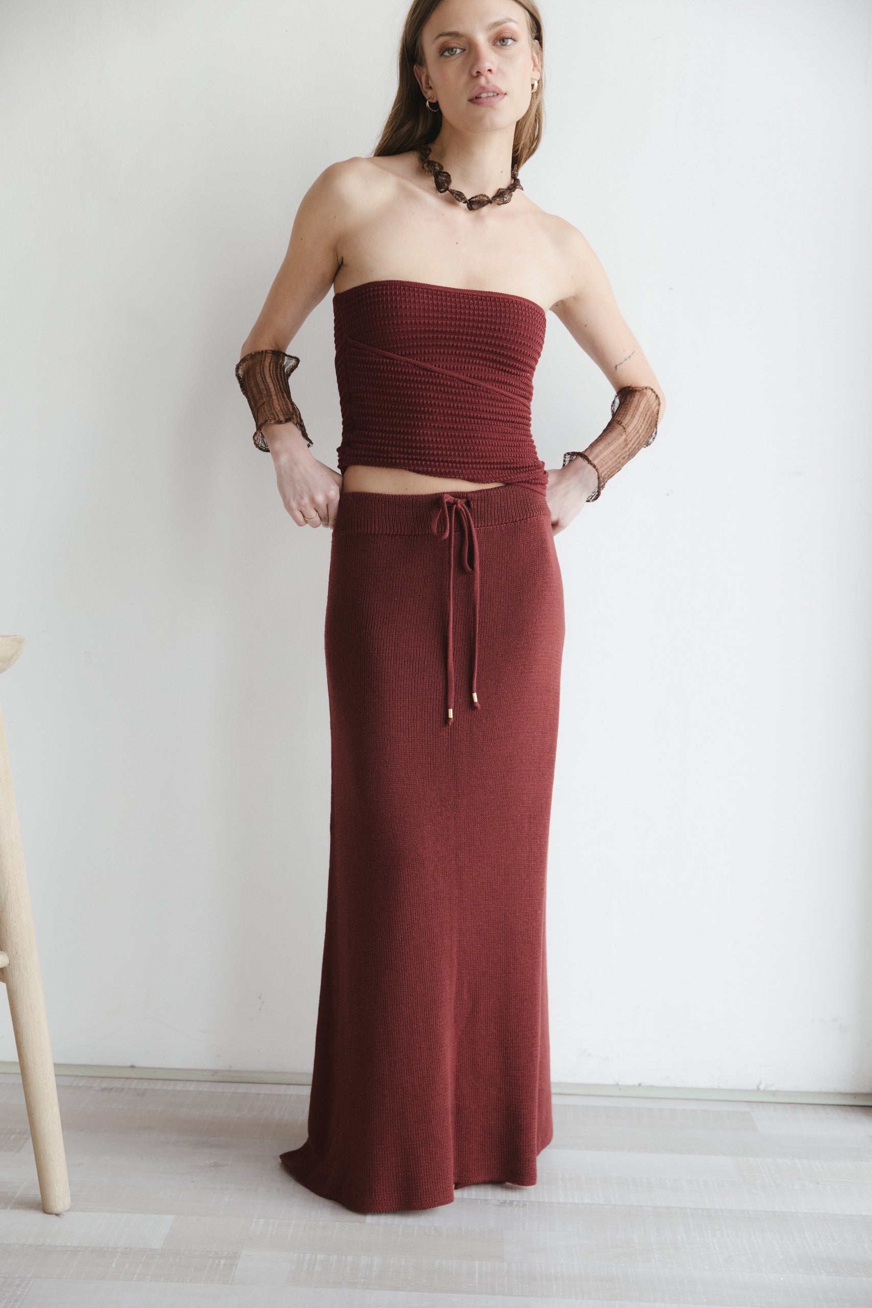 Menos es más. Una falda con una silueta relajada, un fit cómodo y de lineas simples y elegantes. Una silueta fluida, elasticada en la cintura, con tirantes largos y tapa nudos de bronce. Diseñada en algodón con viscosa peruana, la Falda Alaia es un básico para usar todos los días con beatles, tops y tus botas favoritas durante todo el invierno.