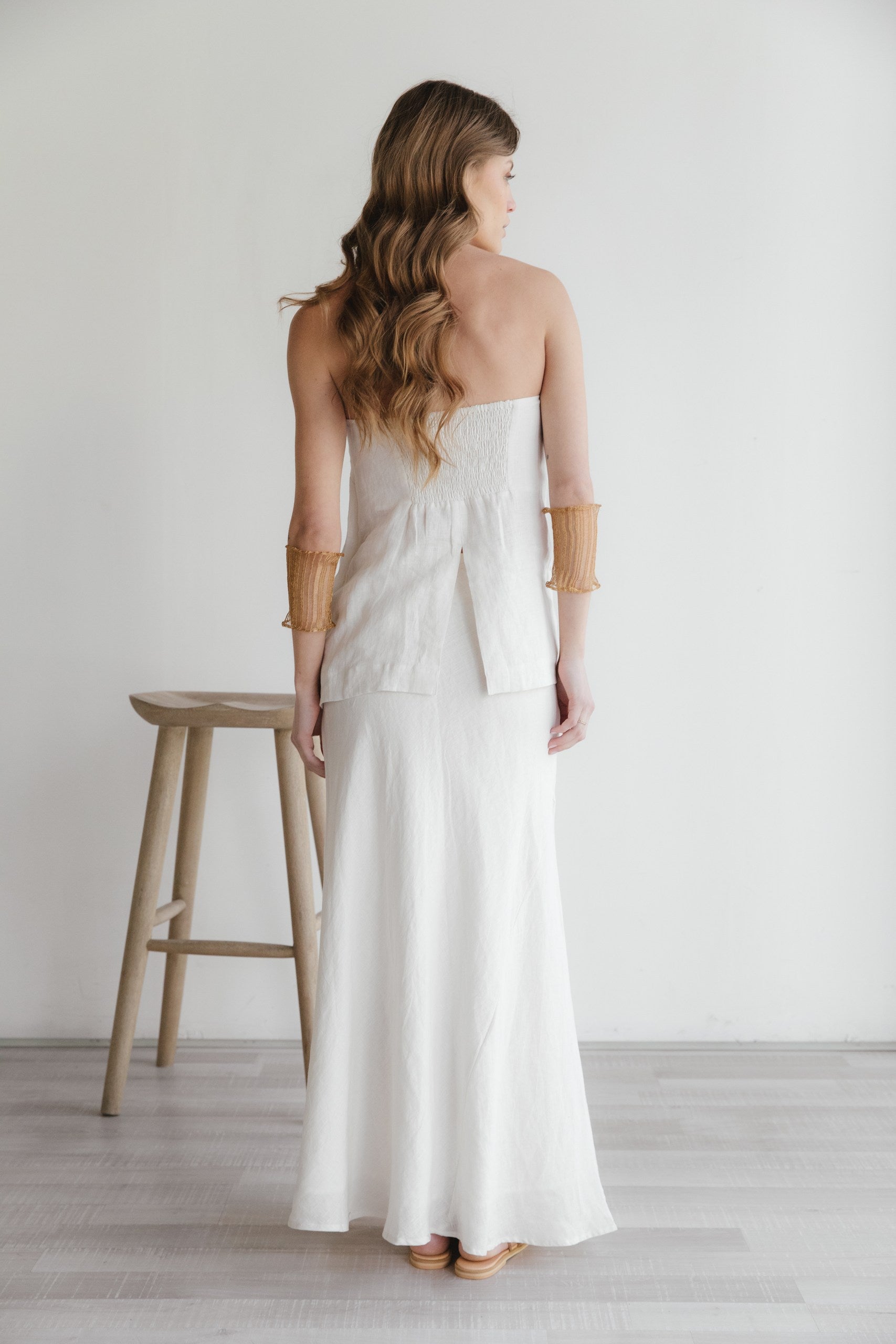 Su caída, amplitud y elegancia son inolvidables. Nuestra Falda Cádiz está inspirada en los trajes y bailes apasionantes del sur de España. Está confeccionada en 100% lino con forro de algodón y se ajusta a la cintura con un cierre lateral. Ideal para combinar en conjunto con todos nuestros tops de lino.