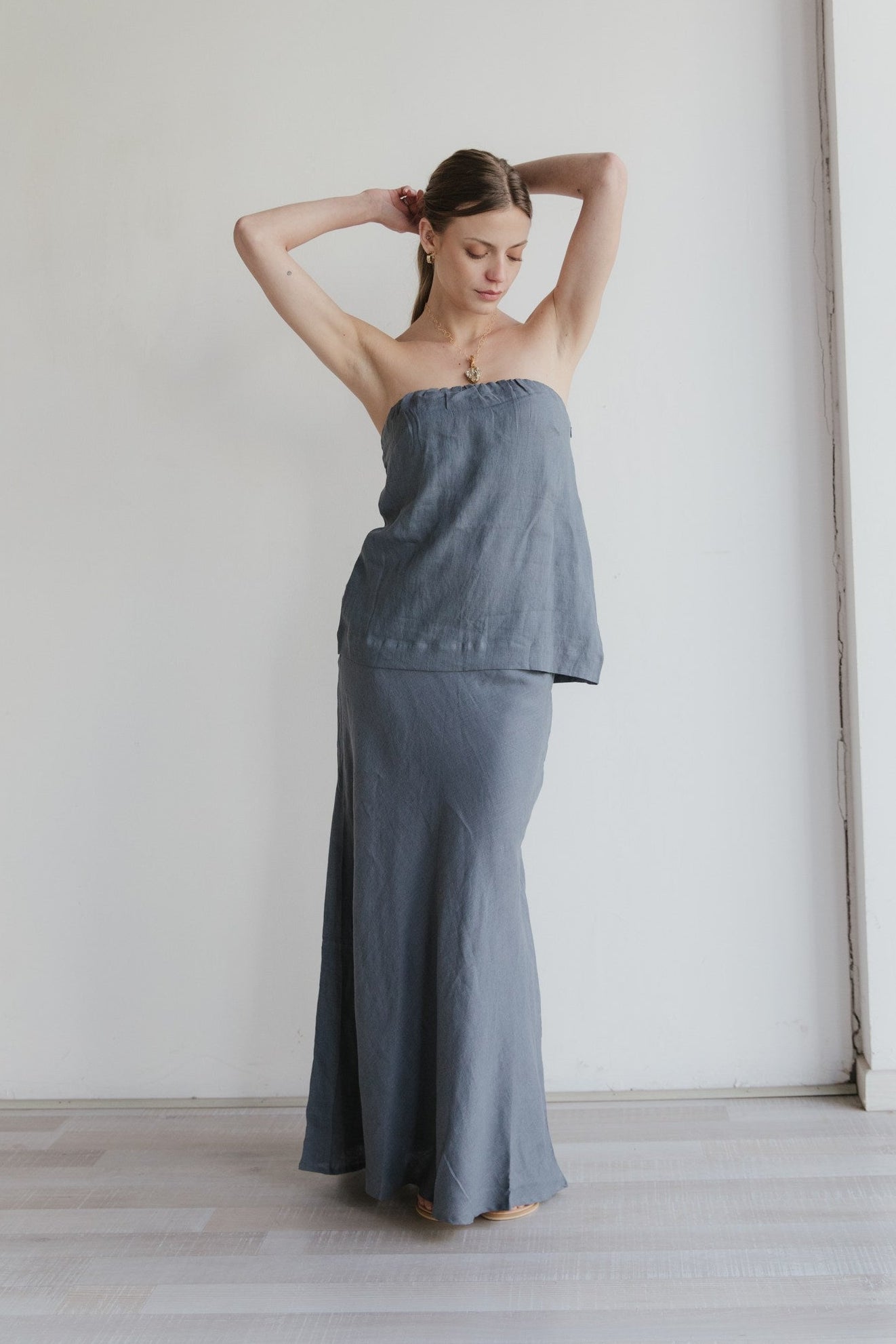 Cuidado y lavado: Las prendas de lino se deben lavar a mano con agua fría, luego se pueden planchar a vapor y guardar colgadas para evitar arrugas o marcas.