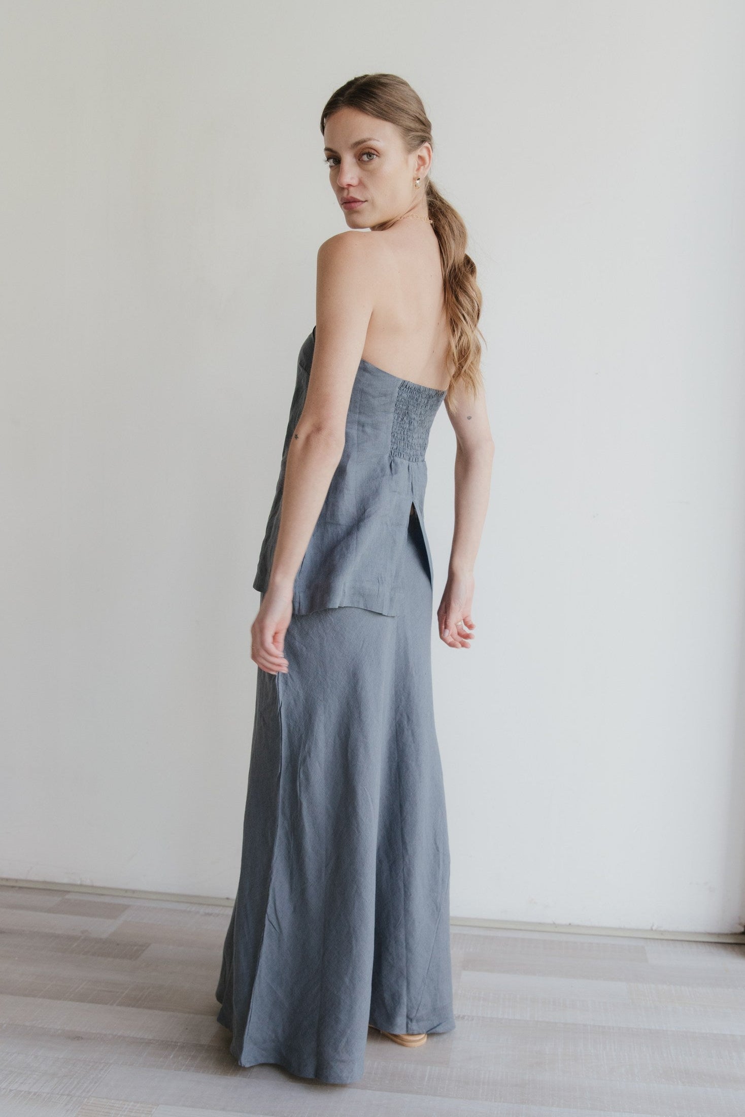 Su caída, amplitud y elegancia son inolvidables. Nuestra Falda Cádiz está inspirada en los trajes y bailes apasionantes del sur de España. Está confeccionada en 100% lino con forro de algodón y se ajusta a la cintura con un cierre lateral. Ideal para combinar en conjunto con todos nuestros tops de lino.