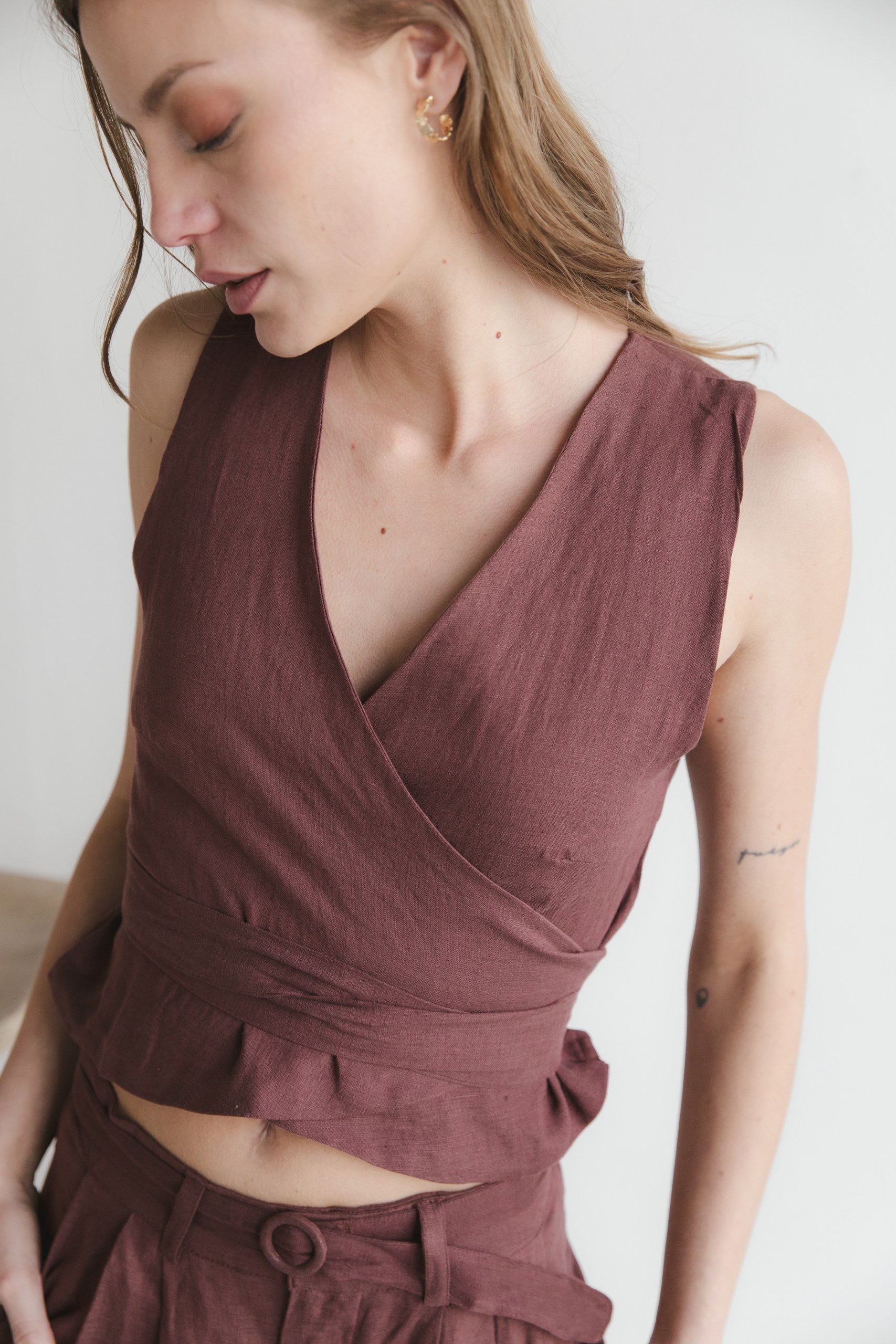 Este top 100% lino con forro de algodón y cruce lateral que se ajusta al cuerpo para realzar la silueta. Diseñado para ocasiones especiales, su escote en V estiliza el cuello y el torso, mientras que la espalda cerrada tipo sastre aporta estructura y elegancia. Una reinterpretación veraniega y juvenil del clásico gillet, con nuestro sello adeu.
