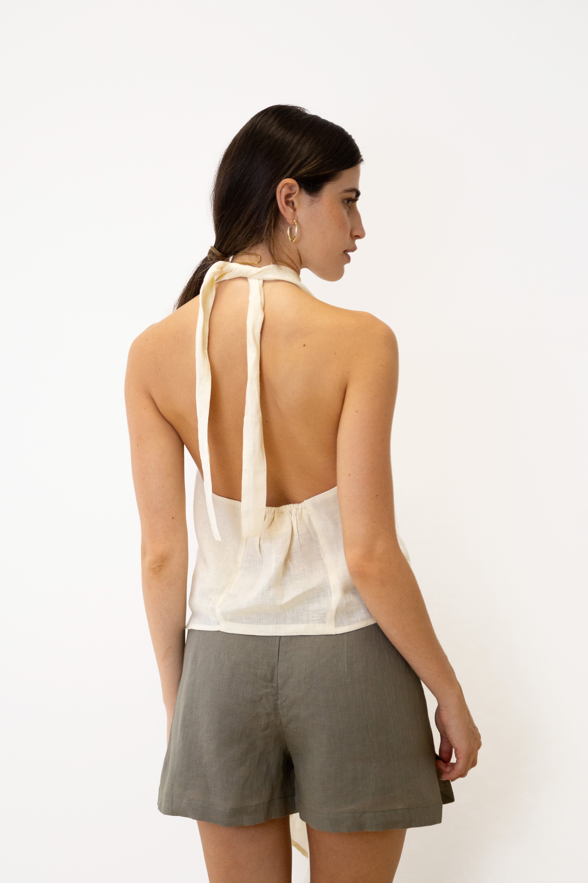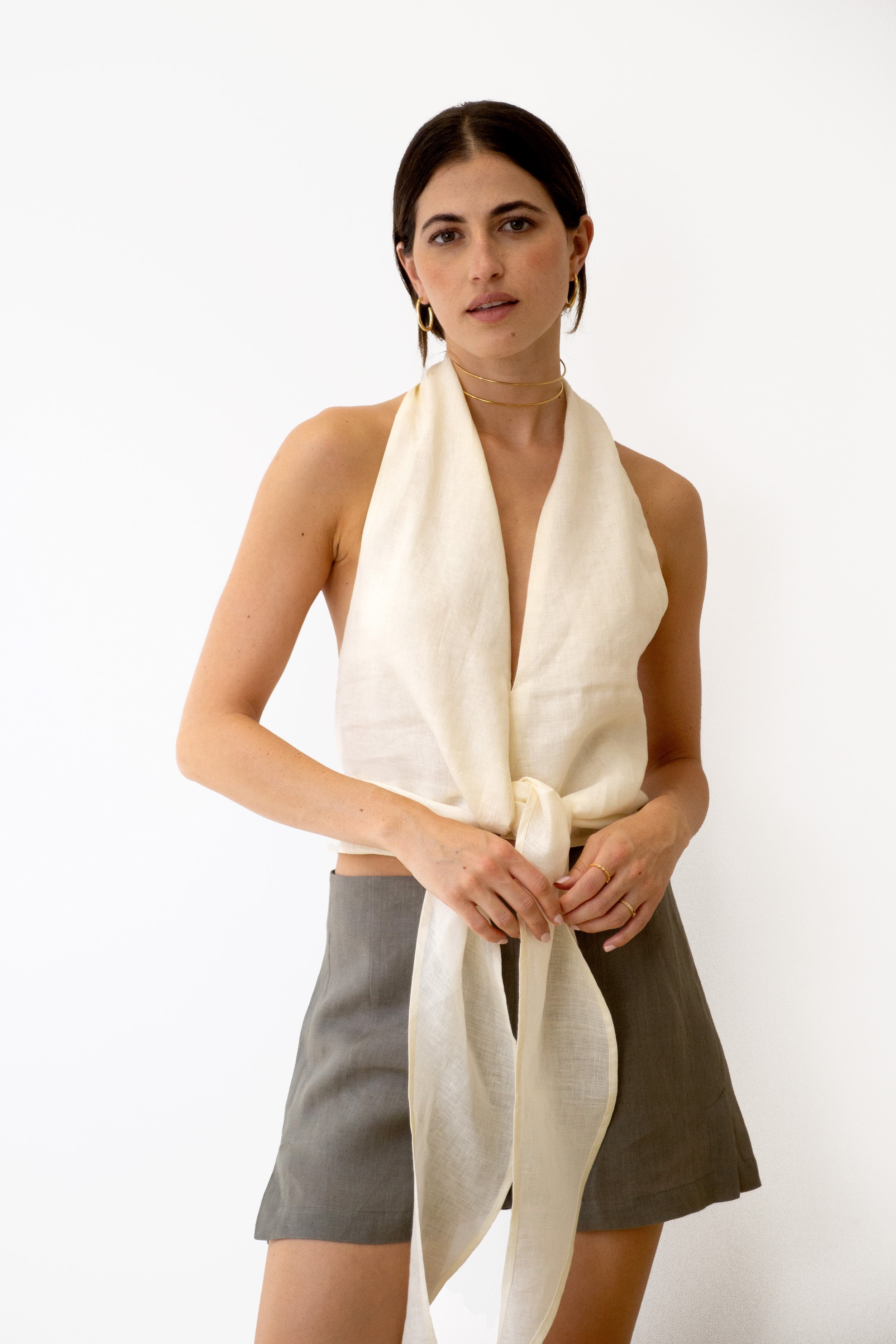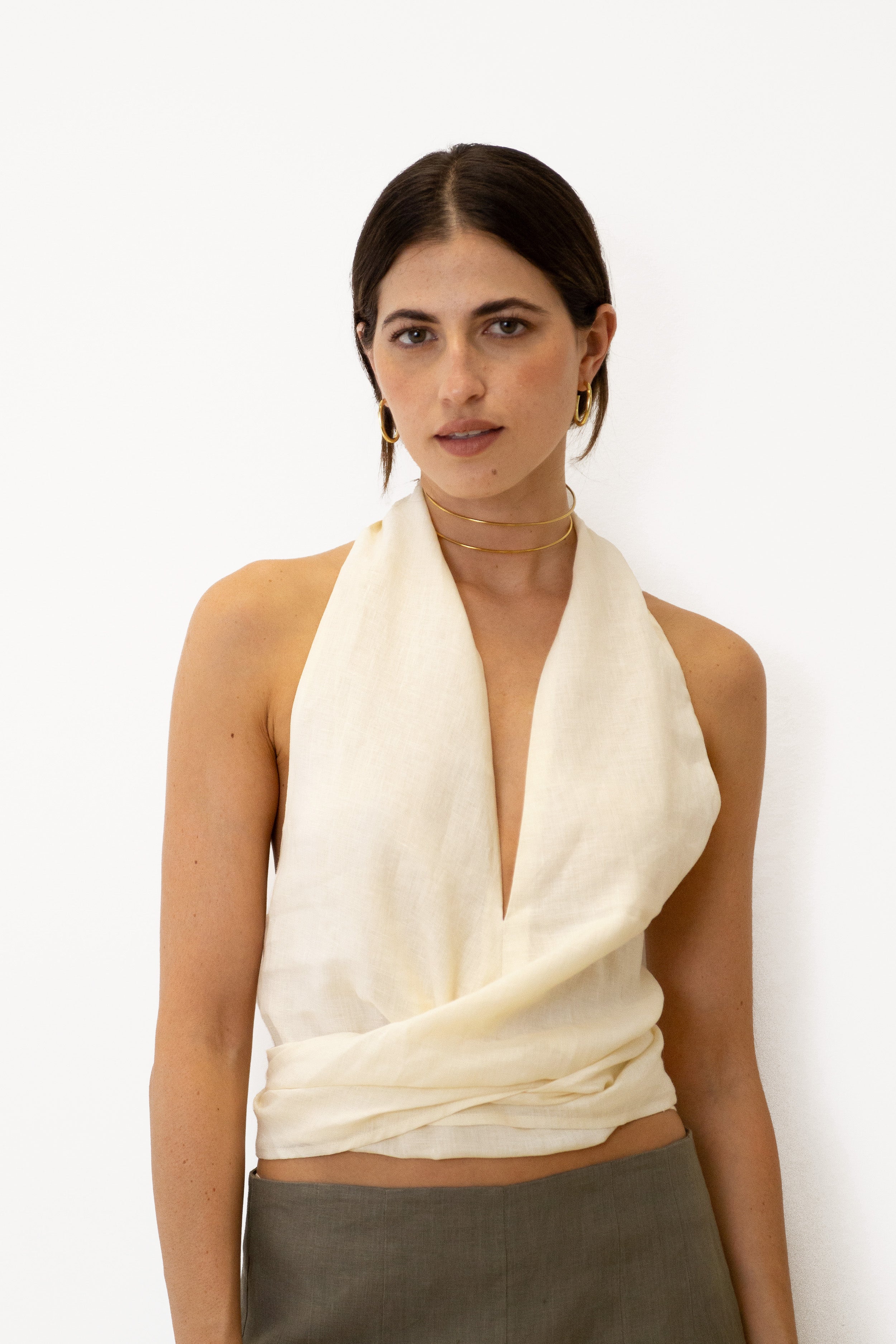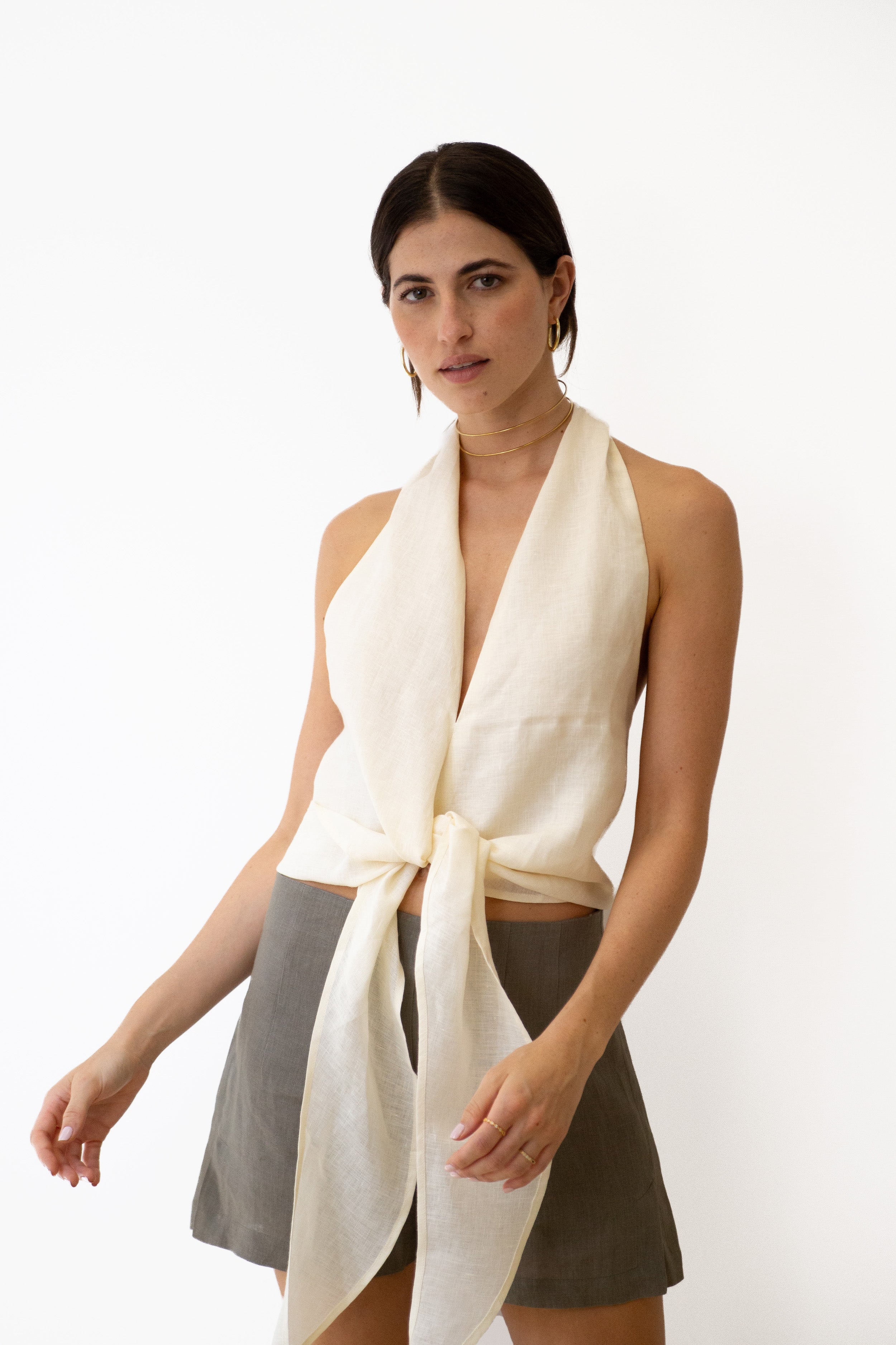 El nuevo favorito de todas las #ChicasAdeu. Nuestro Top Bis es la mezcla perfecta de versatilidad y elegancia. Ajustable al cuello, con una silueta de escote en V, tiene dos lazos con los que puedes jugar, dejándolos caer o ajustándolos al cuerpo para crear un top completamente distinto. Al igual que nuestro famoso Top Río, tiene presillas en la parte trasera que te permiten jugar con la espalda y tener muchas posibilidades distintas con un solo top.