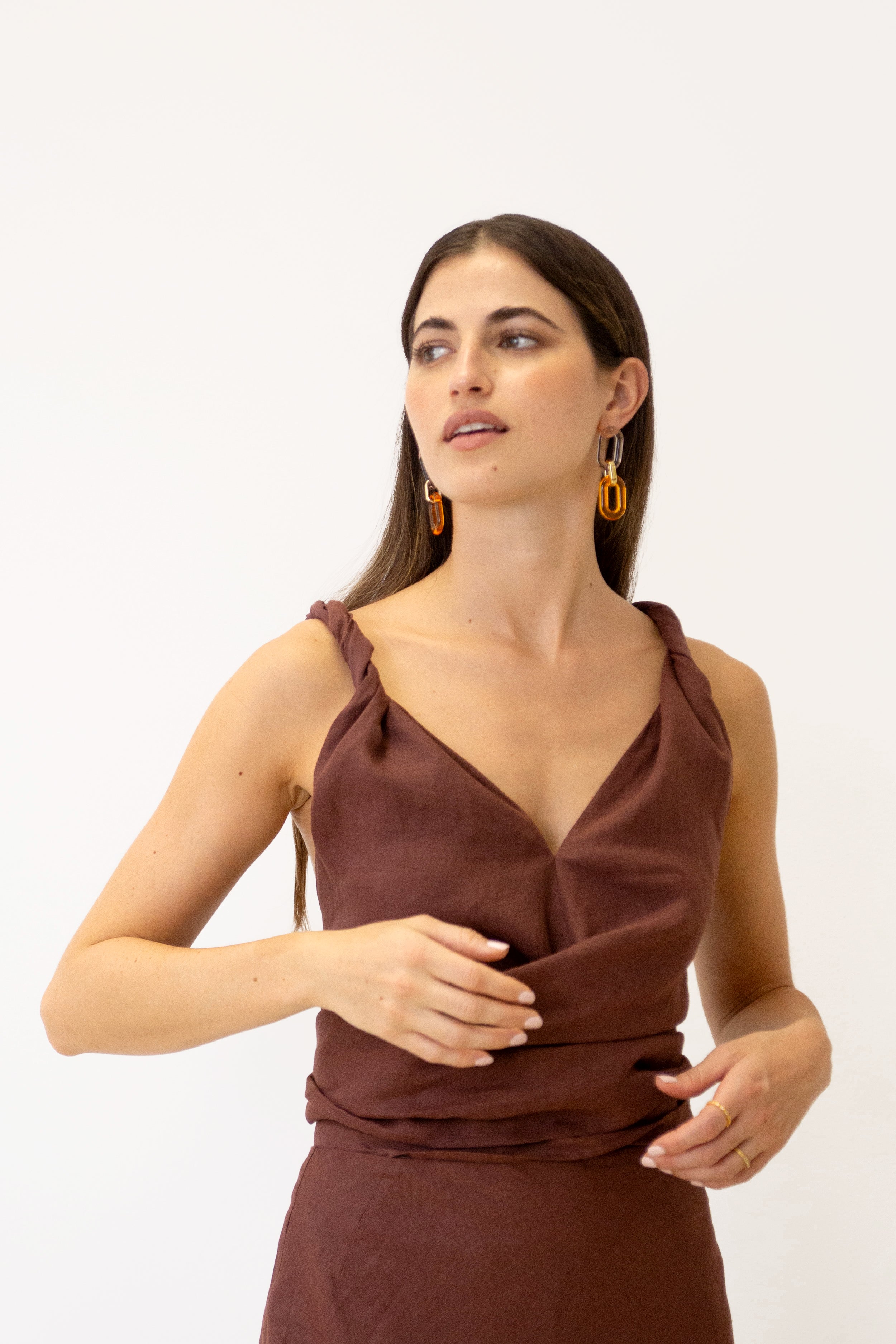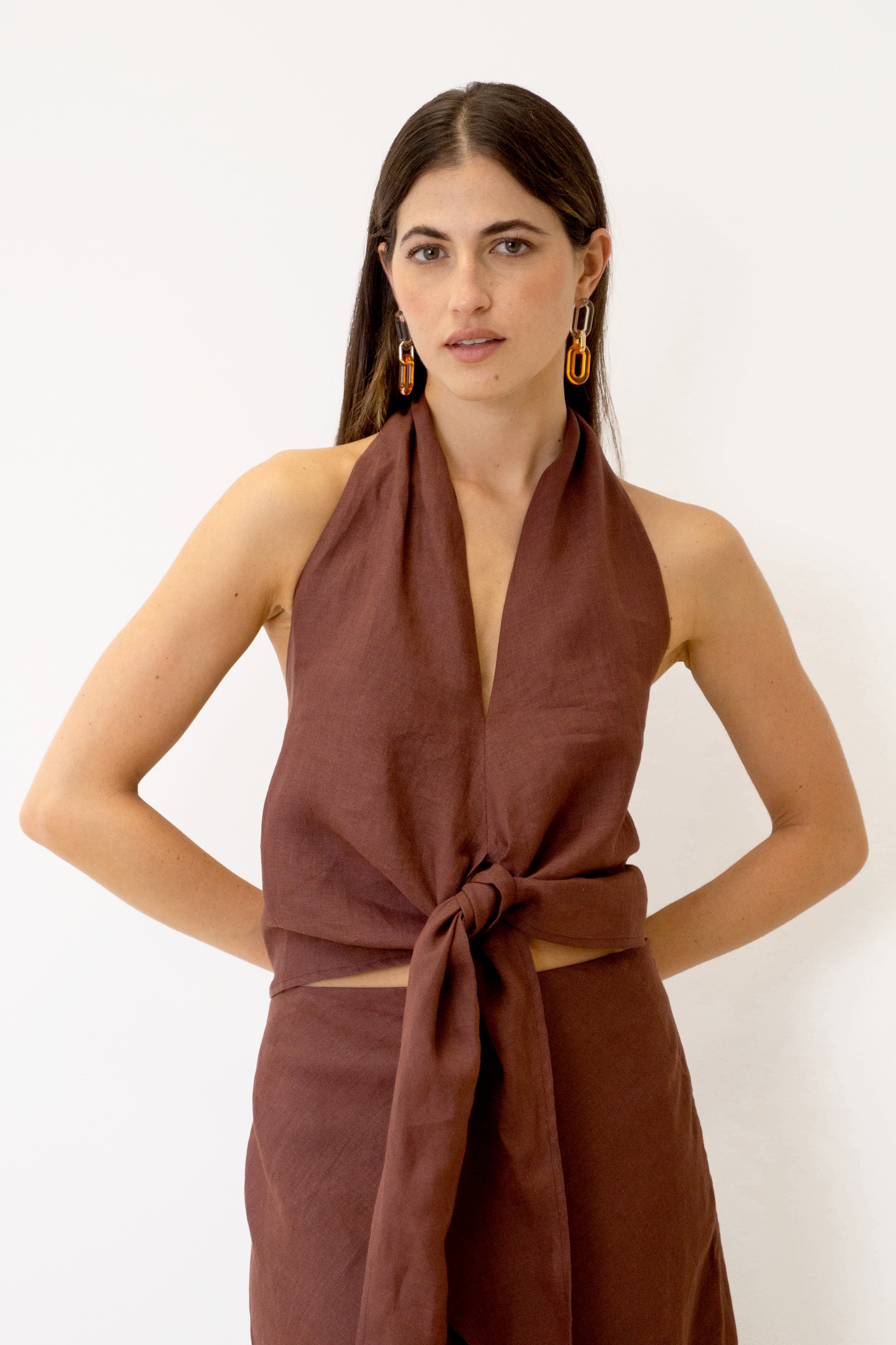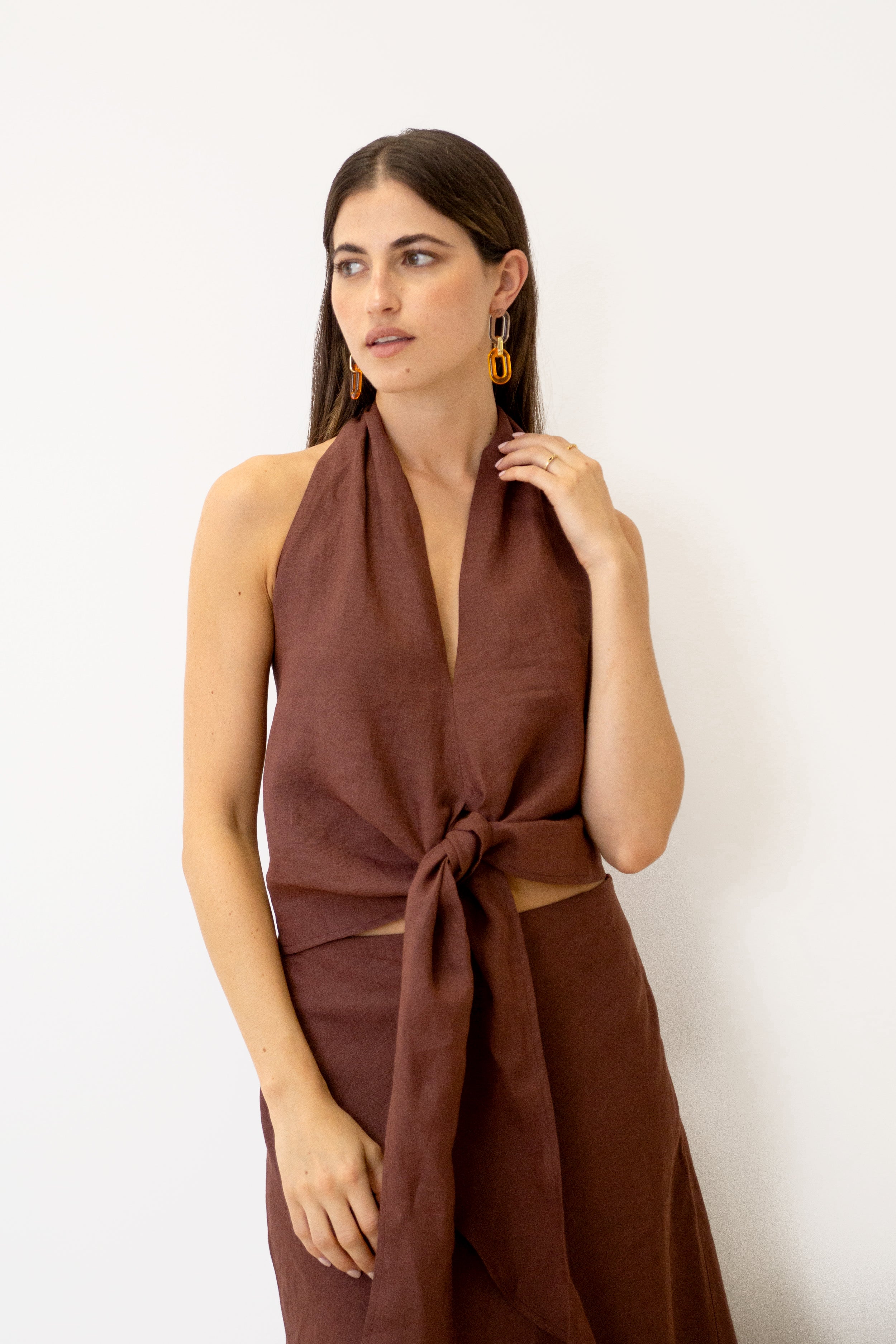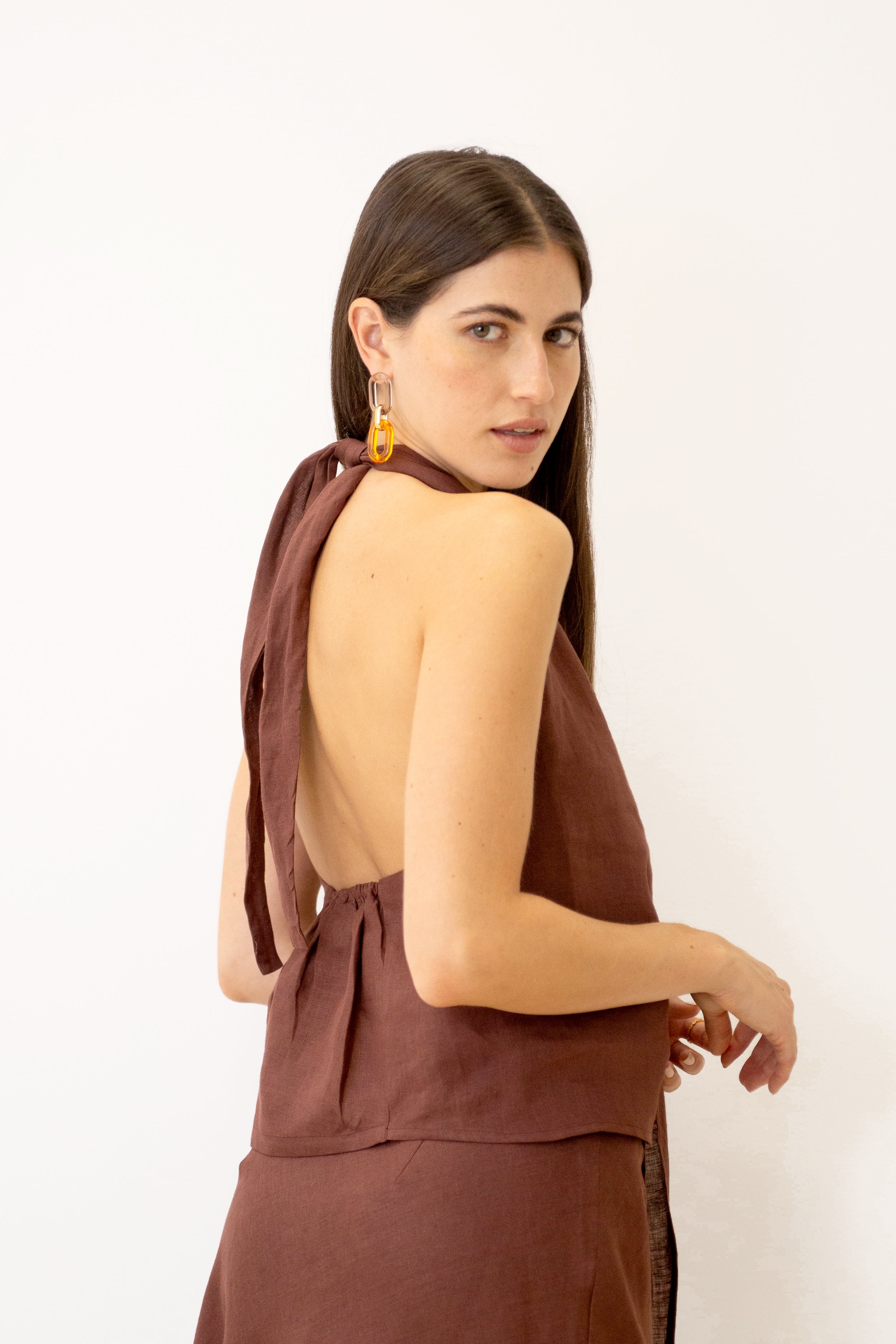 El nuevo favorito de todas las #ChicasAdeu. Nuestro Top Bis es la mezcla perfecta de versatilidad y elegancia. Ajustable al cuello, con una silueta de escote en V, tiene dos lazos con los que puedes jugar, dejándolos caer o ajustándolos al cuerpo para crear un top completamente distinto. Al igual que nuestro famoso Top Río, tiene presillas en la parte trasera que te permiten jugar con la espalda y tener muchas posibilidades distintas con un solo top.
