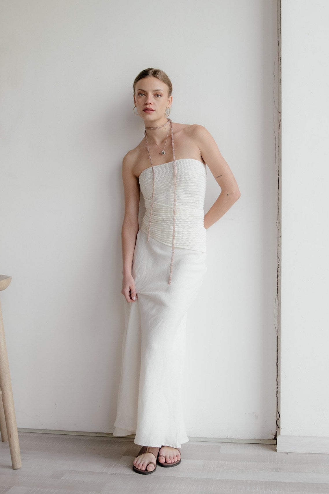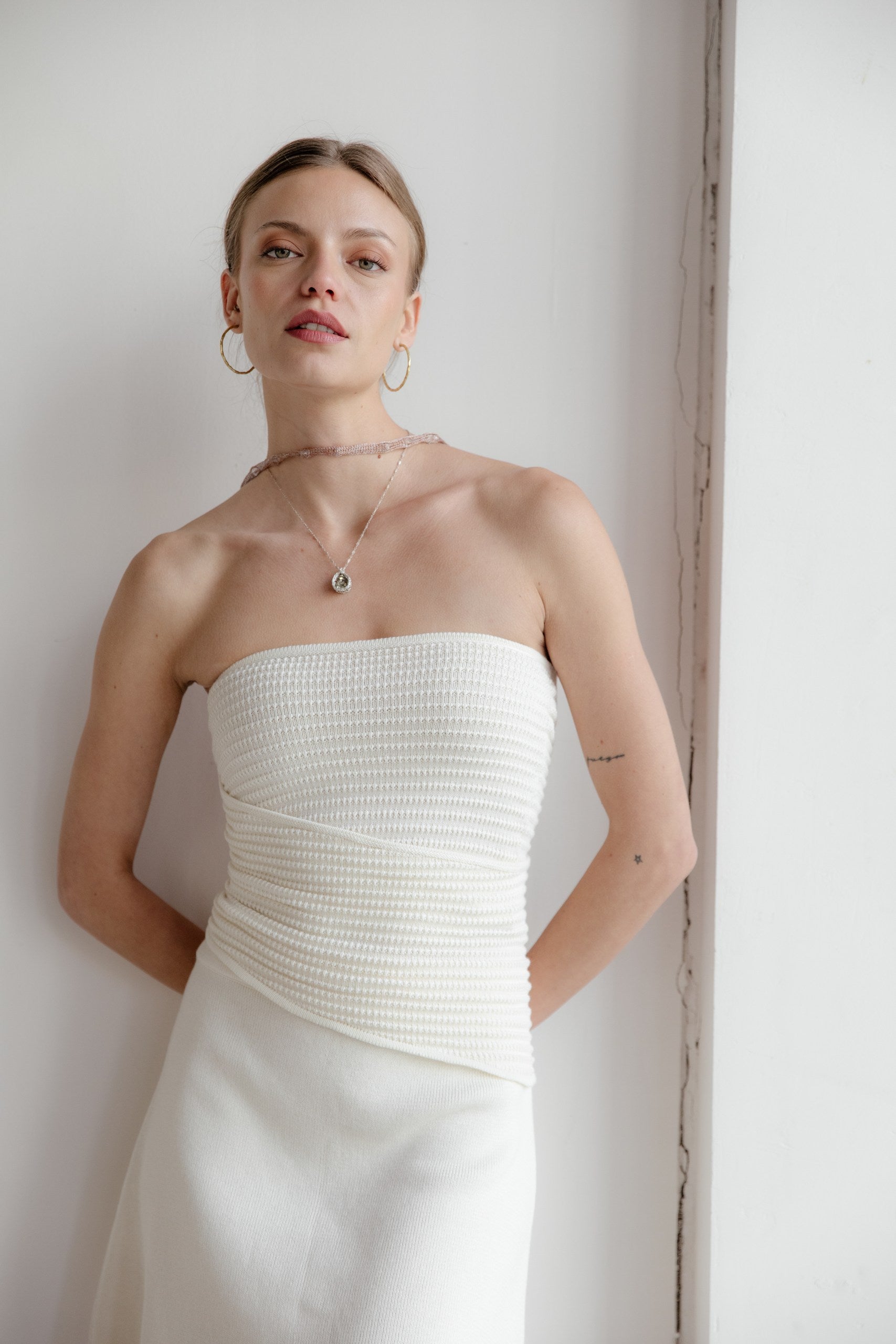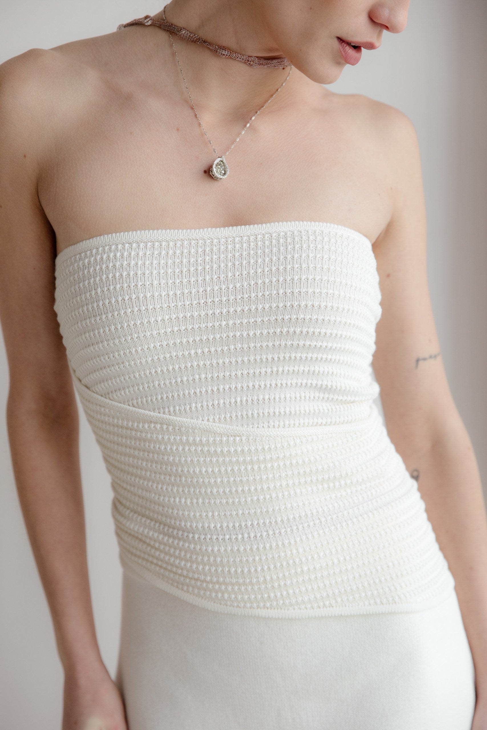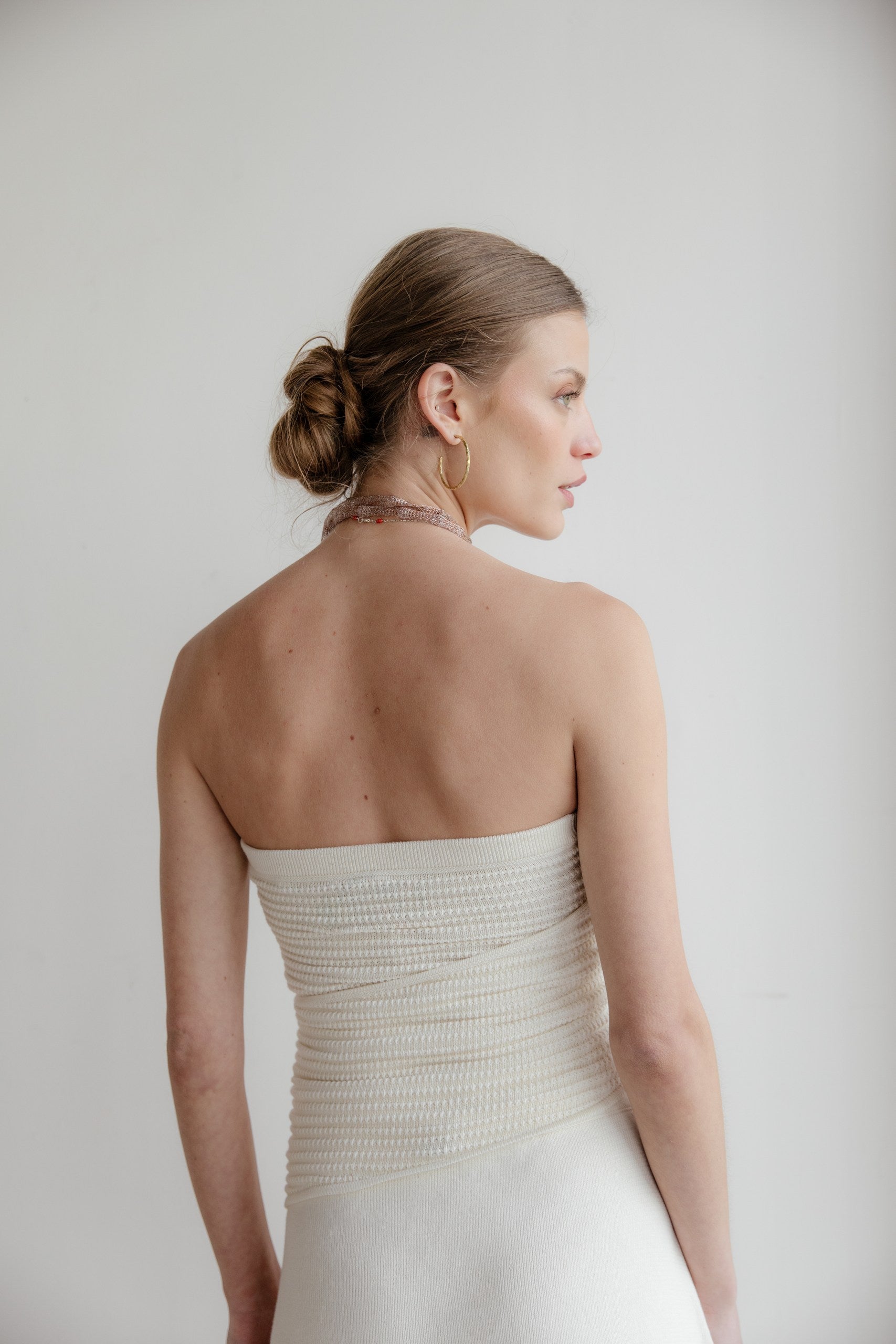 Un diseño original y moderno que promete convertirse en tu nueva obsesión. El Top Lara, strapless y tejido, resalta por su punto especial que le otorga una textura única y sofisticada.