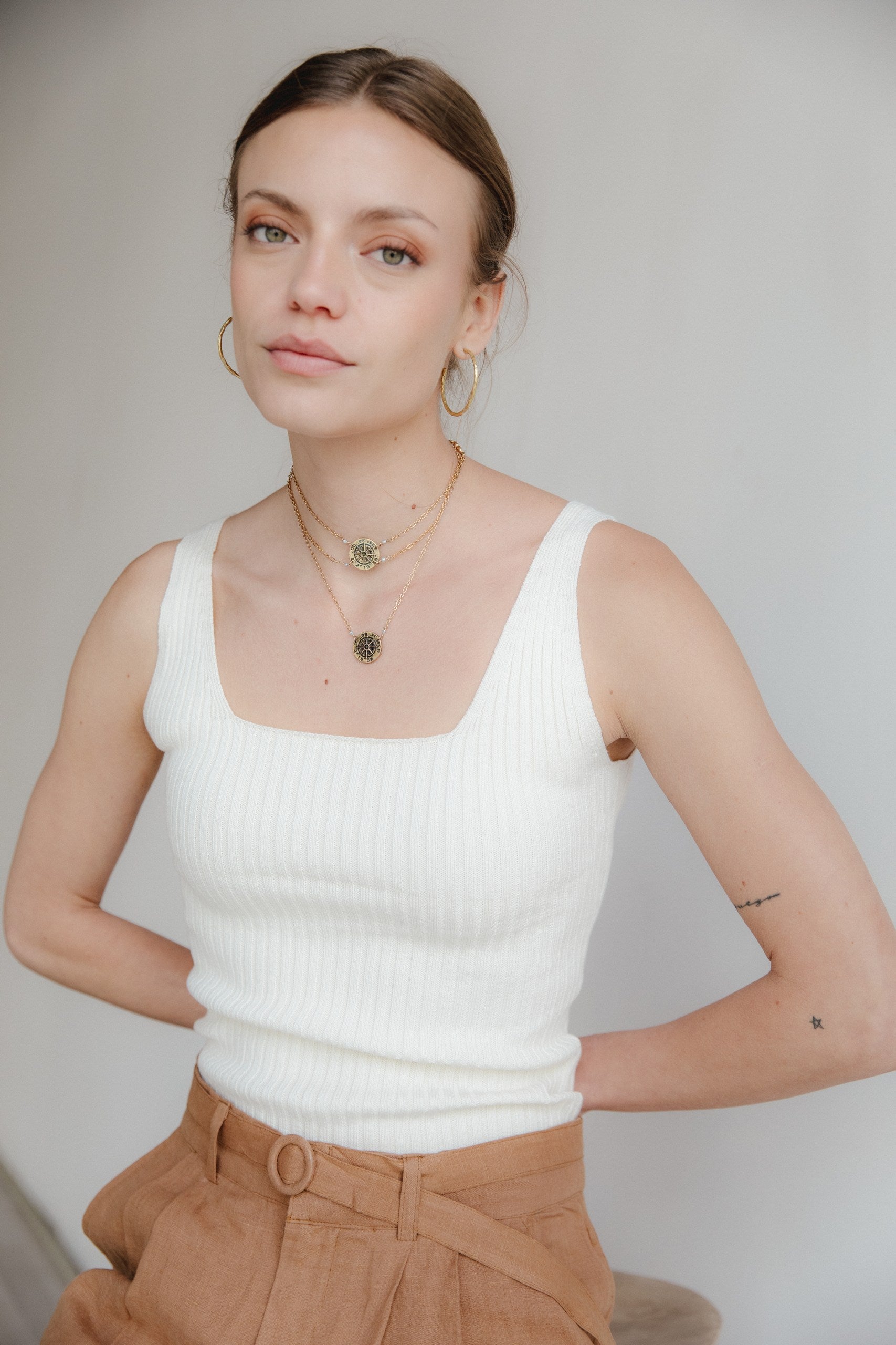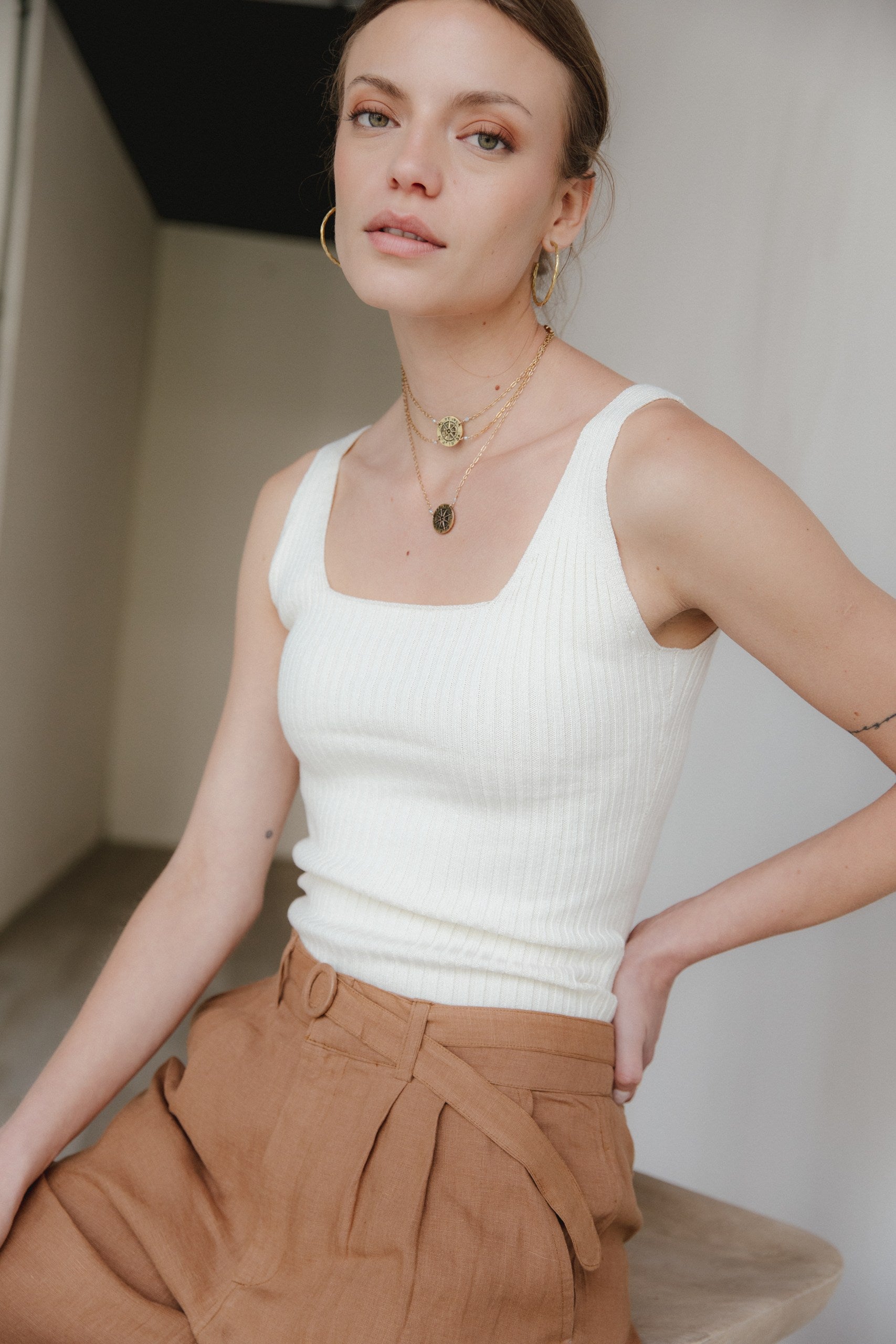 El top de día a día que todas nuestras #ChicasAdeu estaban esperando. El nuevo Top Quad es ajustado a la silueta, con escote cuadrado y tirantes anchos, tiene el largo perfecto para llevarlo por dentro de pantalones y faldas. Confeccionado en tejido rib elástico, es ideal para combinar fácilmente y darle a tu look diario ese toque sofisticado y moderno que tanto nos encanta.