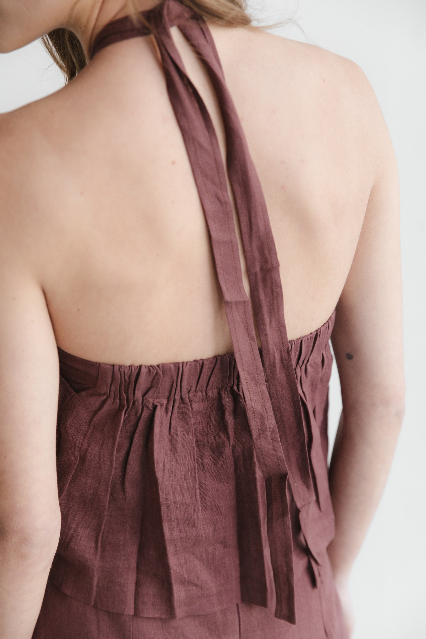 Cuidado y lavado: Las prendas de lino se deben lavar a mano con agua fría, luego se pueden planchar a vapor y guardar colgadas para evitar arrugas o marcas.
